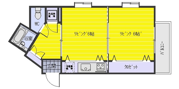 リビング2部屋がバルコニーまで見通せる、明るい間取りです。